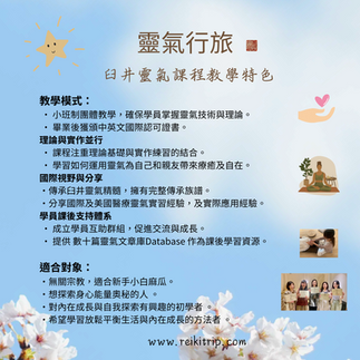 放鬆、放鬆、放下、療癒、舒心。讓靈氣引領你走向更平和的生活! 這個課程能幫助你找到放鬆療癒力量! 🌿 從放鬆開始 這不僅是一堂療癒課程,更是一次心靈的呼吸。透過輕鬆、白話文的教學方式,將靈氣自然融入日常生活,無需額外的能量產品,只需要帶著您的雙手與愉快的心情,開始這段療癒之旅。 💡 課程亮點: - 了解 「臼井靈氣」這項百年療癒技術,為何它能在全球獲得廣泛應用,並進駐歐美的醫療體系,成為正式的醫療靈氣。 - 探索靈氣如何幫助現代人放鬆壓力療癒自我 🌿課程 Q&A https://www.reikitrip.com/post/臼井靈氣新手q-a